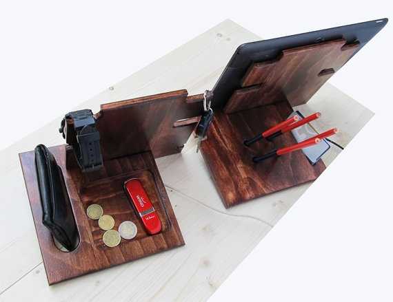 Нашла на ETSY множество фирм и фирмочек, производящих различного рода «органайзеры» (в основном позиционируют их как подарки для мужчин) для гаджетов, ключей, очков и прочего: