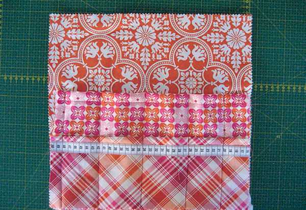 • 3 детали из разных тканей размером по: 35 x 35 см (A), 22 x 35 см (B) и 14 x 35 см (C)