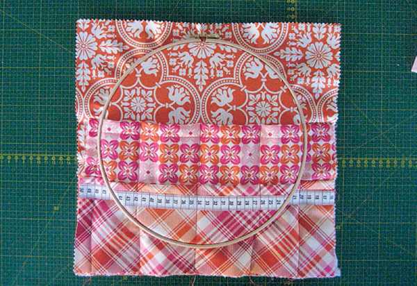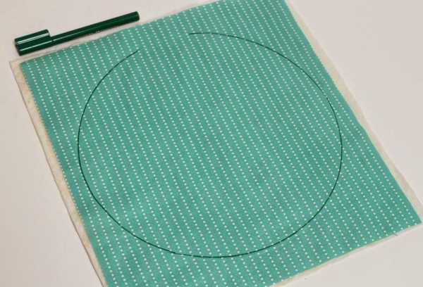 Уложите ткань для основы поверх ватина. Сверху поместите пяльцы и очертите вокруг маркером.