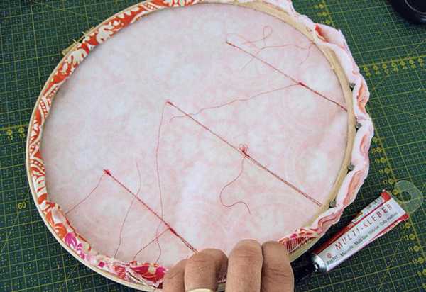 Аккуратно натянуть ткань на пяльцы.