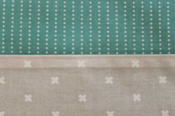 Возьмите ткань для кармашков. Подверните одну длинную кромку приблизительно на 7 мм, прогладьте ее утюгом. Затем сделайте еще один загиб, чтобы необработанный край оказался внутри. Прострочите кромку на швейной машинке.