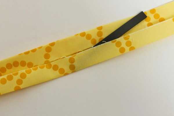 Сложите желтую полоску так, чтоб магнитная лента была надежно зафиксирована внутри. Прострочите вдоль обеих кромок.
