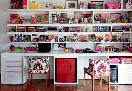Места для занятий рукоделием всегда не хватает. В таких случаях можно использовать столы с полками и ящиками.