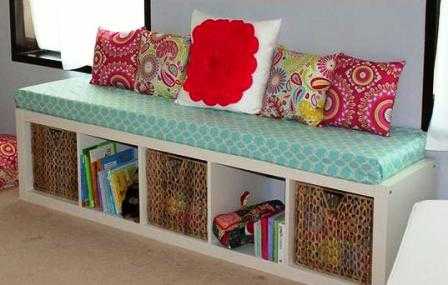 Как правило, организация пространства, начинается с прихожей комнаты. Низкая тумба с подушками или небольшим матрасом, в которой есть ниши для разных мелочей. Такую тумбу лучше поставить в коридоре или в прихожей. Можно присесть, снимая или надевая обувь.