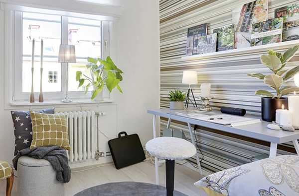 Некоторые функциональные зоны в «однушке» все же имеет смысл выделить стационарно. Например, рабочий уголок нужен каждый день, поэтому нет смысла его каждый день «собирать». Пусть в пространстве комнаты будет существовать такая зона. Можно подвесить специальные стеллажи по периметру выбранного уголка, поставить туда компьютерный стол, удобный и негромоздкий стул. А чтобы визуально отделить эту зону – использовать легкий стеллаж на колесиках или модульные полки, которые можно ставить одну на другую или по принципу паззла. Стеллаж в случае чего можно будет потом перекатить в другое место или разобрать и убрать.