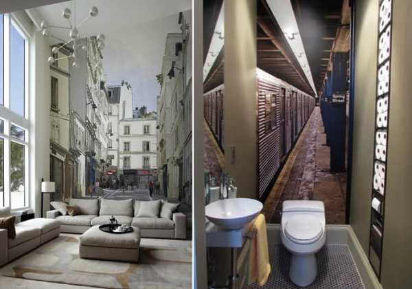 Еще один способ расширить и декорировать пространство при помощи систем хранения – использовать фотопечать на фасадах. Если правильно подобрать картину, то она создаст ощущение перспективы. Но стоит избегать подобного приема в совсем небольших комнатах.