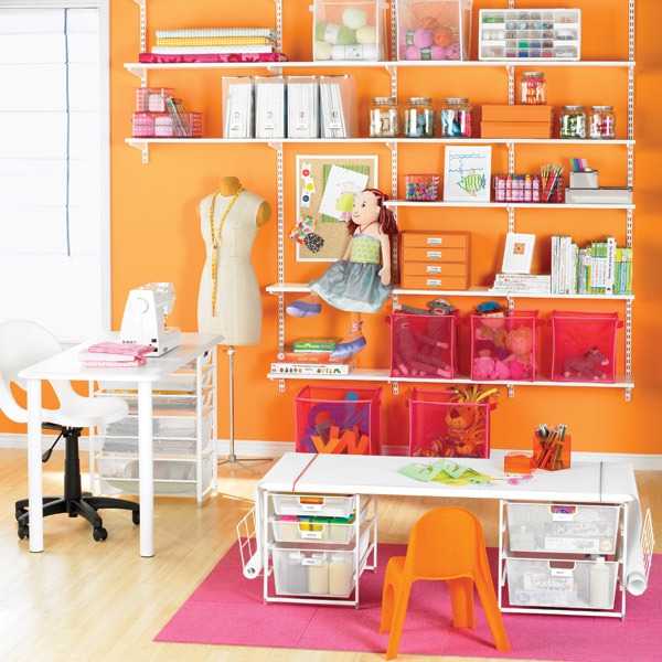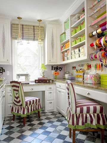 «Комната для рукоделия даёт вам возможность разложить бумагу, ленты и банты таким образом, чтобы они были всегда перед глазами и в пределах лёгкой досягаемости», – говорит дизайнер, занимающийся обустройством систем хранения. «Наличие определённой территории для занятия рукоделием создаёт зону, свободную от стрессов для работы, а также сохраняет другие области вашего дома от беспорядка, вызванного творческим процессом.»