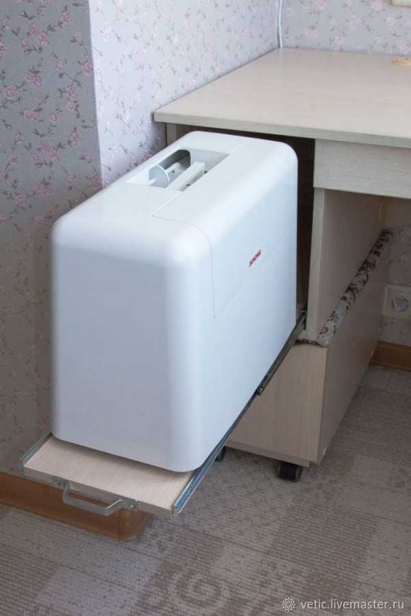 Внимательные читатели, возможно, заметили, что, кроме швейной машины на столе волшебным образом возник коврик для неё. Где он хранился и как оказался на рабочем месте?