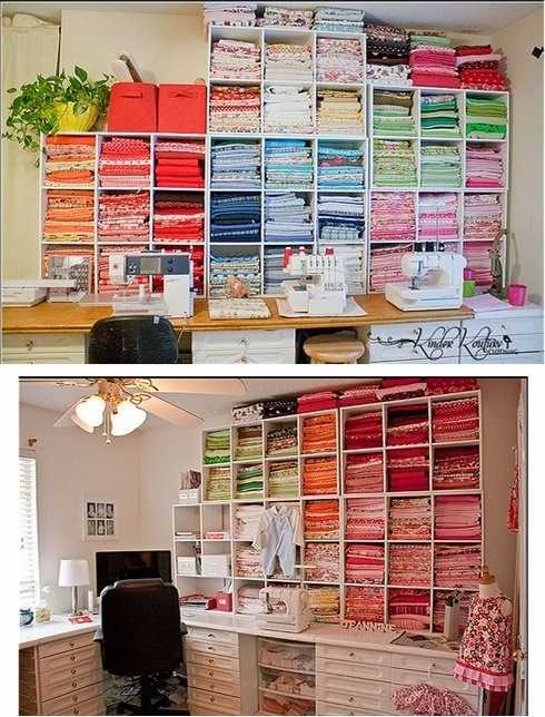 Ну что тут сказать? Очень хочется себе такую красоту. И как бы это грустно не звучало, фотографии все иностранные… Для большинства из нас такие рукодельные комнаты недосягаемы, поэтому надо исходить из своих возможностей и брать примеры с наших рукодельниц, изменивших свое рабочее пространство к лучшему. Вот посмотрите: