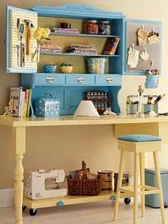 - стационарное место, оборудованное специально под рукодельнические нужды, чтобы не таскать каждый раз нитки, пуговицы, иголки и прочие вещи;