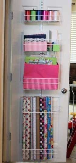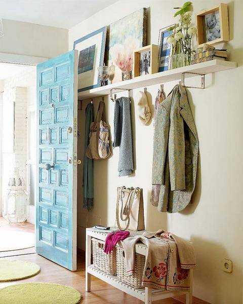 17. Если позволяет ширина шкафа, то всегда использовать дверь для хранения плоских вещей, мелочевки (повесить тряпичное панно с карманами, крючки, полочки с перекладиной).