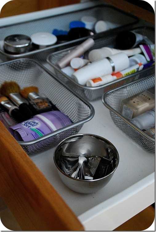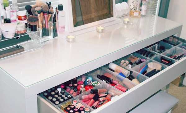 Используйте вот такие аккуратные отделения для хранения косметики в ящиках.