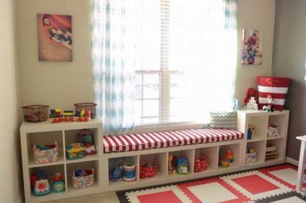 Появилась полочка, в которой можно хранить игрушки и другие вещи. Кроме этого, такую полку можно использовать как скамейку.