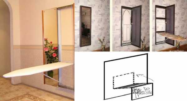 18. Гладильную доску можно спрятать за зеркалом или картиной. Аналогично можно разместить решетку для развешивания белья после стирки.
