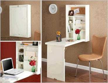 Схожая идея и с рабочим местом, спрятанным за откидным столиком.