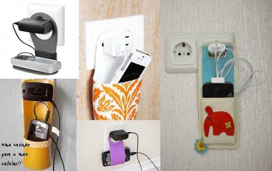 25. Опять же было много-много раз, но реально полезное приспособление: подставка под телефон, вешающаяся прямо на вилку зарядного устройства, воткнутую в розетку. Причем эту вещицу можно купить, но для нас-то гораздо проще, оригинальней и дешевле сделать самим – из пластиковых бутылок, а если чуть больше заморочиться, то сшить, сплести, сколотить… (короче, простор для фантазии большой!)