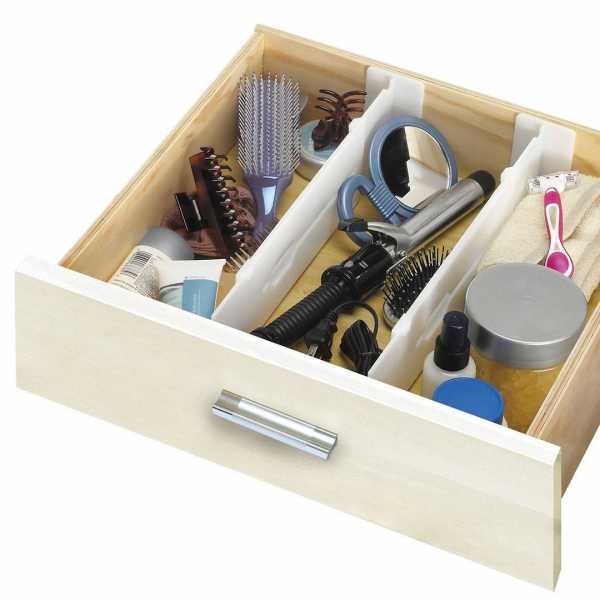Многим доводилось наблюдать картину: спустя буквально несколько дней аккуратно разложенные стопочки одежды в общем отделении шкафа превращаются в невероятный хаос. Маленькие вещи в большом пространстве без делений не занимают много места, но, чтобы найти их в общей куче, приходится перекапывать ее всю. Для этих и многих других подобных ситуаций существуют органайзеры и разделители: специальные лотки, разгораживающие антресоли деревянные и пластиковые или картонные (для коробок) перегородки позволят рационально и аккуратно хранить одежду и украшения, носки и нижнее белье, канцелярские принадлежности и кухонный инвентарь.