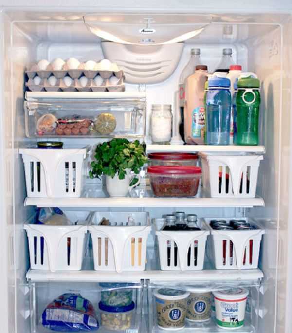 Появились пластиковые корзинки с рукоятками и контейнеры. В них распределены продукты так, чтобы можно было сохранить много места и при этом быстро найти нужный продукт. Кроме всего прочего, внутренность холодильника обрела более приятный вид. При желании к контейнерам и корзинкам можно добавить надписи продуктов, для которых они предназначаются.