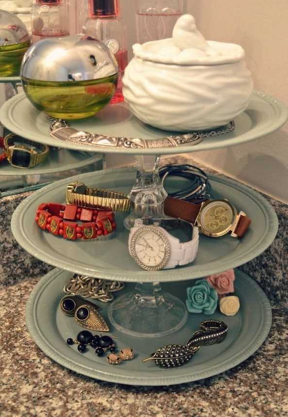 Подставку можно сделать самостоятельно. Вам потребуются: клей, тарелки и подсвечники11. Колоду карт можно хранить в мыльнице