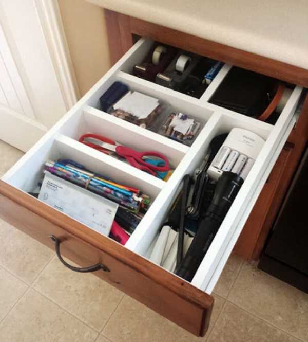 Не стоит хранить вперемешку носовые платки, свечи для торта и наборы цветных карандашей. Даже в небольшой квартире легко отвести отдельный ящик или коробку под канцелярские принадлежности, медицинские препараты, запчасти детского конструктора Lego, флешки и т.д. – при необходимости не придется тратить кучу времени на поиск нужной, но куда-то запропастившейся среди прочих вещей мелочи.