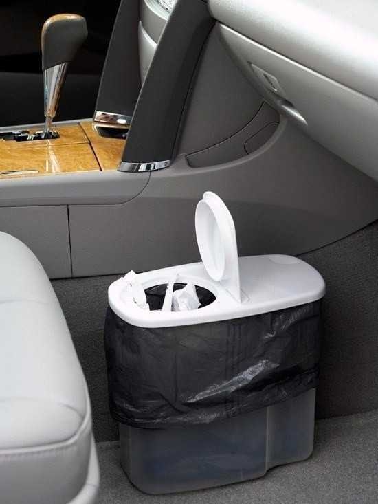 В таком мешке можно хранить те игрушки, с которыми ребенок любит играть на улице или на пляже18. Пластиковый контейнер в качестве мусорного бака в машине