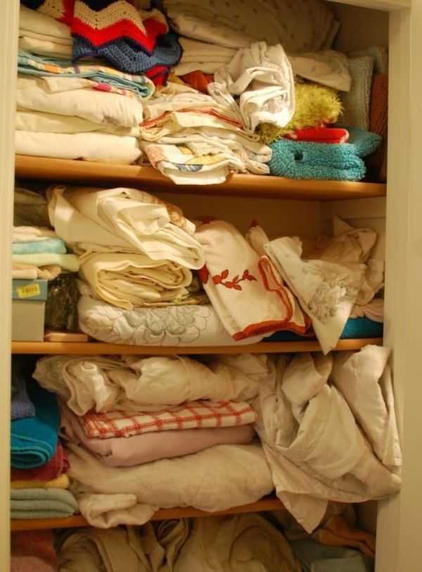 В таком хаосе трудно понять, где пододеяльник, где простыня и где наволочки. Более того, если захочется достать полотенце, которое находится под грудой белья, то некоторые вещи могут просто вывалиться.