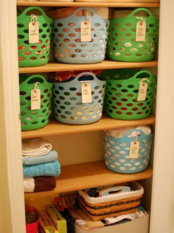 Корзины, ведерки и полочки для разных вещей будут хранить предметы, которые раньше были просто разбросаны.