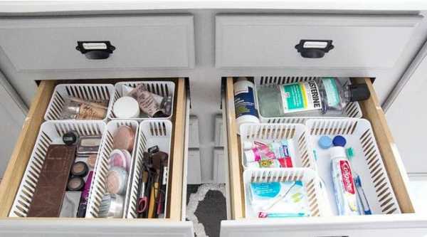 Вам помогут обычные органайзеры или корзиночки, каждая из которых выполняют свою отдельную функцию. Всё на своих местах и всё понятно.