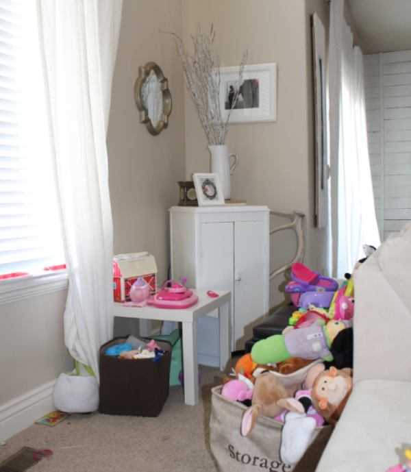Все игрушки быстро убираются в угол комнаты или под кровать, но чаще всего они разбросаны по комнате.