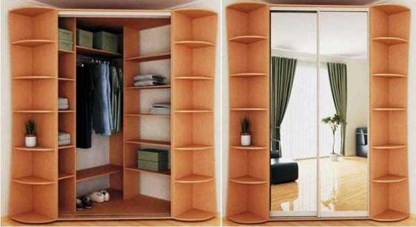 Благодаря современным технологиям изготовления мебели форма шкафа-купе может быть самой разной, а внешние углы модели способны иметь любой градус наклона. Однако есть и небольшая сложность: купить готовую типовую мебель такого плана никак не получится. Придется заказывать шкаф-купе от производителя, предварительно договорившись о проведении необходимых замеров.