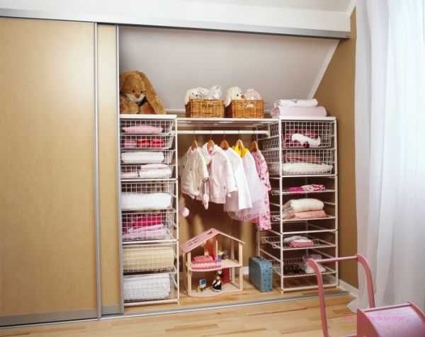 В детском шкафу купе должно быть предусмотрено место для одежды и, конечно же, игрушек и самых разнообразных детских принадлежностей.