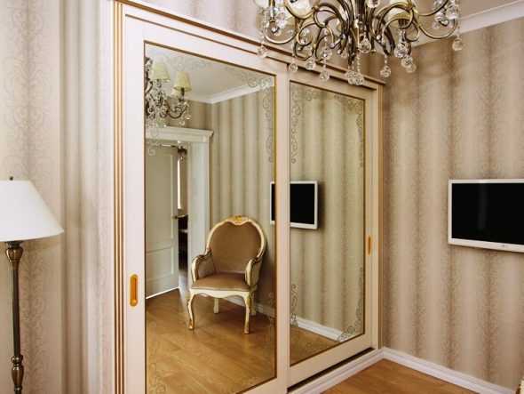 Совет. Если нет предпочтений по выбору фасада, выбирайте зеркальные дверцы, которые расширяют пространство и не требуют соответствия какой-либо стилистике.