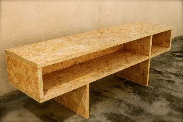 OSB может быть с успехом использована в качестве материала для мебели, например, для кухонных шкафов или полок. Плита твердая, не будет давать никаких перекосов. Дополнительным ее преимуществом является декоративная структура. Сама мебель из ОСБ должна быть как можно более простой – интересная текстура материала будет достаточной, чтобы сделать предмет мебели привлекательным.