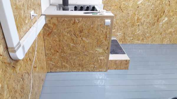 Единственная существенная особенность — все места стыков участка, выложенного плиткой с «голыми» участками ОСБ необходимо тщательно обработать водоотталкивающей шпатлевкой и пропиткой.
