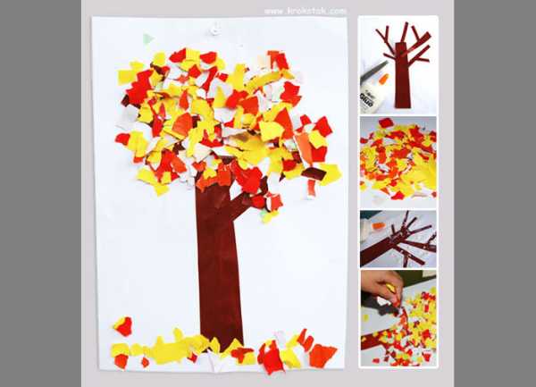 Самые терпеливые могут сделать объемную осеннюю поделку при помощи плотных комочков из тонкой цветной бумаги или салфетки.