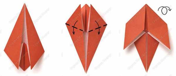 Наше оригами будет собираться из модуля «трилистник». Схема его сборки: