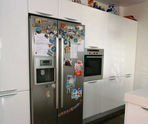 Невстраиваемый, обычный холодильник категорически нельзя плотно «зажимать» пеналами и антресолями! Это, пожалуй, самая распространенная ошибка при проектировании кухни. Проработает в таких условиях он очень недолго, поскольку будет постоянно перегреваться.