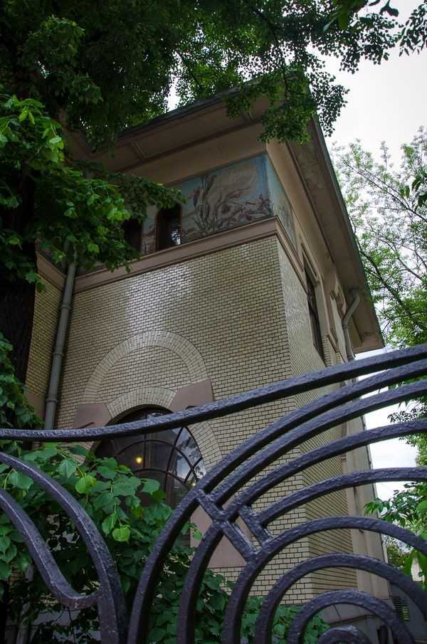 Вся структура дома подчинена символам мироустройства. Спиралевидные завитки уличной ограды напоминают бегущие волны, переплеты окон и входной решетки уподоблены извивающимся побегам или растущему дереву, в балконной решетке можно уловить мотив рыбьей чешуи. Пластическое пространство напоминает архитектуру Гауди. Кстати, Шехтель и Гауди были хорошо знакомы, не раз встречались и обменивались идеями. Гауди был почти на 20 лет старше и обладал несомненным авторитетом для Шехтеля.
