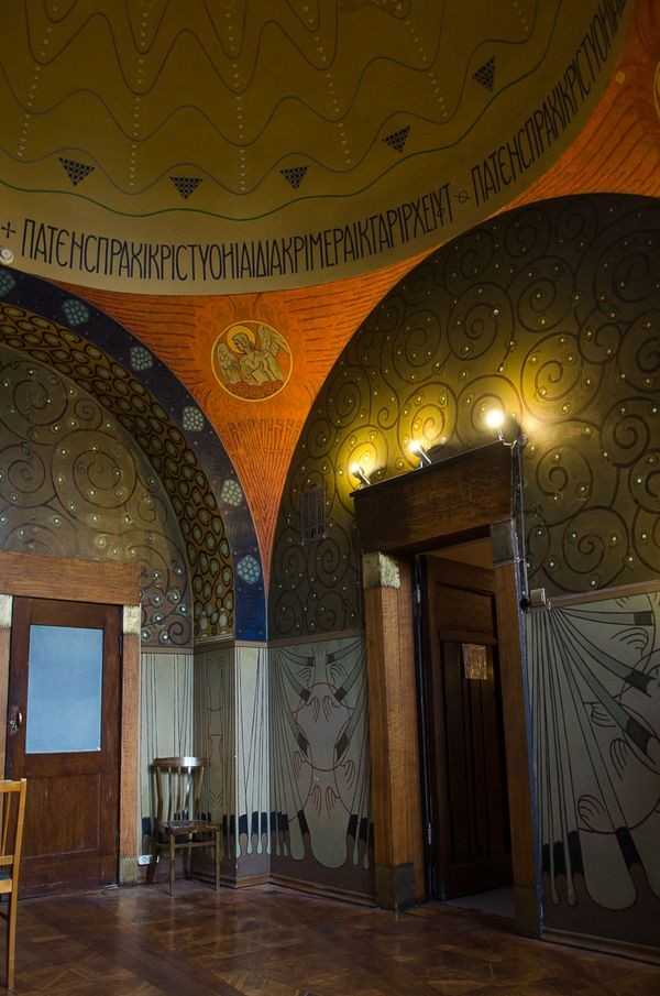 Венчает мир — малый космос — этого особняка, эстетика которого должна вести человека к нравственному совершенству и добру, старообрядческая тайная молельня, расположенная в мансарде, в северо-западном углу дома. Рябушинские были старообрядцами.