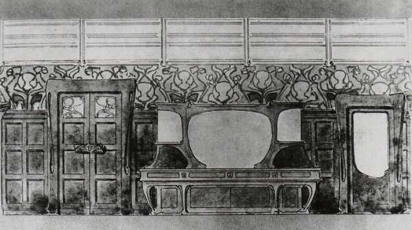 Столовая. Эскизы Ф.О. Шехтеля: окно, фриз, экран, сервант, дверь на балкон. Начало 1900-х гг.
