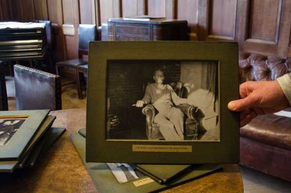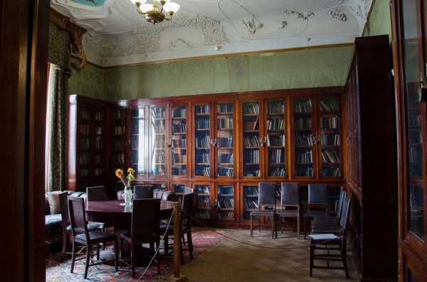 Книжные шкафы появились в этой комнате с приездом Горького. Его библиотека, находящаяся в доме, насчитывает 12 000 томов, 2000 томов с пометками.. По словам самого писателя, это четвертая его библиотека, остальные разбросаны по тем городам, где он жил. Горький часто покупал книги в нескольких экземплярах, чтобы иметь возможность их раздаривать. 1000 томов он подарил родному городу Нижнему Новгороду. Если он знал, что какой-то писатель сочиняет рассказ на историческую тему, старался подарить ему полезную в его труде подборку книг. Собранная им здесь библиотека до сих пор служит людям. Если нужной книги нет ни в одной библиотеке Москвы, кроме квартиры Горького, вы можете прийти сюда, заказать книгу и почитать ее прямо в Горьковской гостиной. Гостиная-библиотека – это еще одна комната, где собирались компании литераторов.