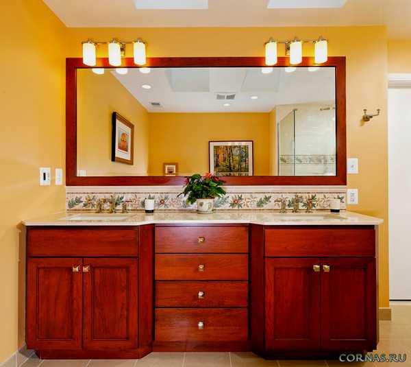Чаще всего зеркало располагают над умывальником. Эта зона должна быть освещена наилучшим образом.