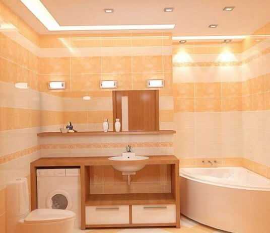 При определении количества и мощности светильников также следует пользоваться маленькой поправкой на цвет стен помещения. Светлые стены лучше рассеивают свет, а значит можно ставить лампы меньшей мощности (умножаем результат на 0,8). Если же дизайн ванной предполагает тёмные цвета, расчётное число светильников нужно умножить на 1,5. На столько же увеличивается результат, если потолки выше 3 м.
