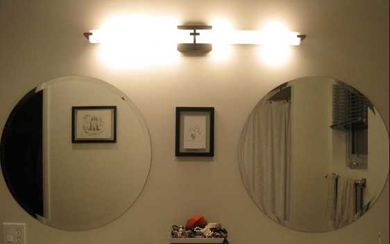 - Для широких зеркал подойдут горизонтально расположенные светильники.