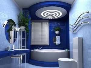 Если ванная позволяет, и вы делаете точечные светильники в разноуровневом потолке, позаботьтесь о том, чтобы была возможность включать не все точки сразу, а хотя бы в двух-трех вариантах: центральные, те, что идут по периметру потолка или четыре угловых светильника должны выключаться автономно друг от друга. Для осуществления уборки и стирки потребуется полный свет, а вот принимать ванну можно и при частичном освещении.