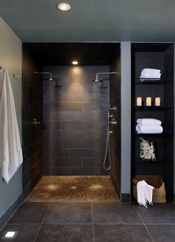 Не теряют своей актуальности и привычные потолочные лампы или люстры. Выбор модели производится, исходя из масштабов помещения. Хотя зачастую исходные параметры душевых (так же как и туалетов) весьма ограничивают дизайнерские возможности.
