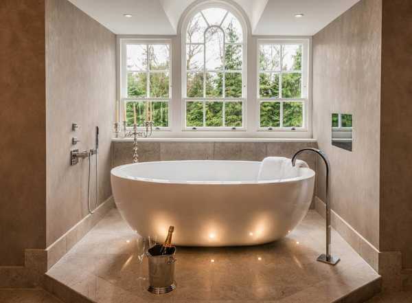 Еще один эксклюзивный момент – это напольное освещение, когда точечные светильники встраиваются вокруг ванны. При выключенном верхнем свете зрелище незабываемое!