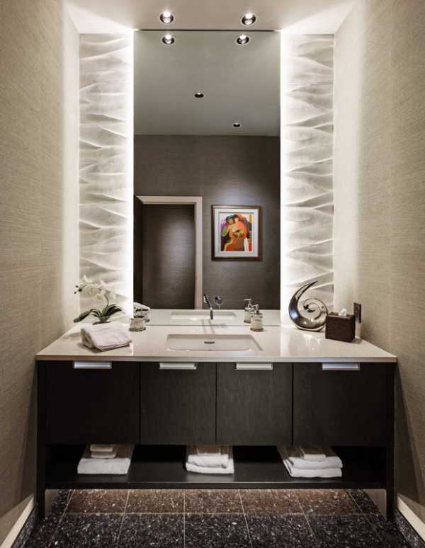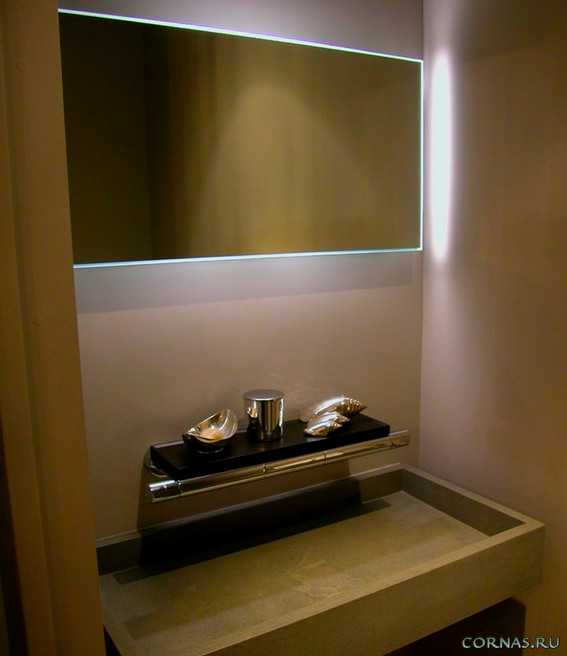 С таким же успехом это может быть зеркальный шкафчик, со встроенными LED-лентами.