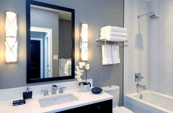Ванная комната имеет несколько зон, каждая из которых требует хорошего освещения. Идеальным вариантом будет использование светильников с креплением на стену.