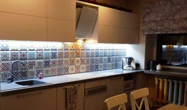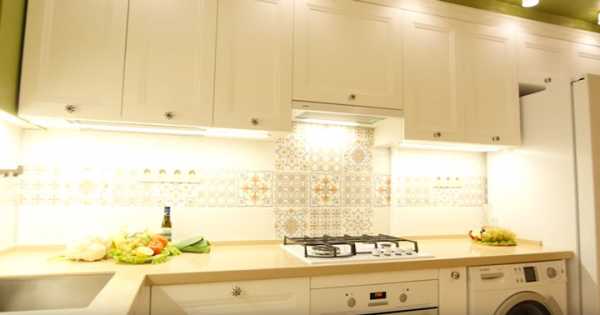 А как предусмотреть подсветку, если кухонная мебель еще на стадии заказа? Самое главное здесь, не забыть сделать вывод для этой подсветки, примерно на высоте 160см от уровня чистового пола, в месте одного из верхних кухонных шкафчиков.